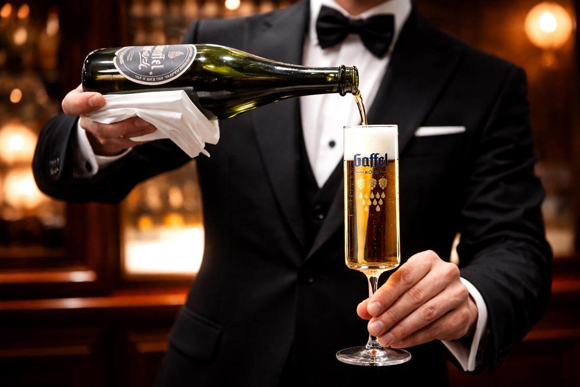 Кёльш (Kölsch) всегда был про скорость: налили, выпили, повторили. Но Gaffel – одна из крупнейших немецких пивоварен – совершила маленький заговор против спешки. Нет, здесь не улучшили рецепт пива (он и без того прекрасен). Здесь осовременили атмосферу, просто добавив к классическому штанге – бокалу-столбику для кёльша – высокую ножку. Вместе с этим преобразился имидж пива и замедлился ритм питейного ритуала!